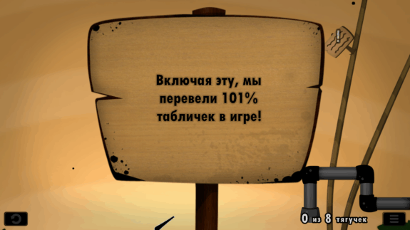 In the third chapter, there is a level with the very imperative name “You Have To Explode The Head” and a very non-obvious subtitle: “the original cog in the machine.” As it turned out, the level name references a small game called “You Have to Burn The Rope,” and the description refers to the fact that this level originally had the name that was later given to the entire chapter. To our knowledge, that game doesn’t have a Russian translation, so we tried to keep the dry tone: “Explode The Head”, and in the subtitle we wrote: “the former cog in the machine.”